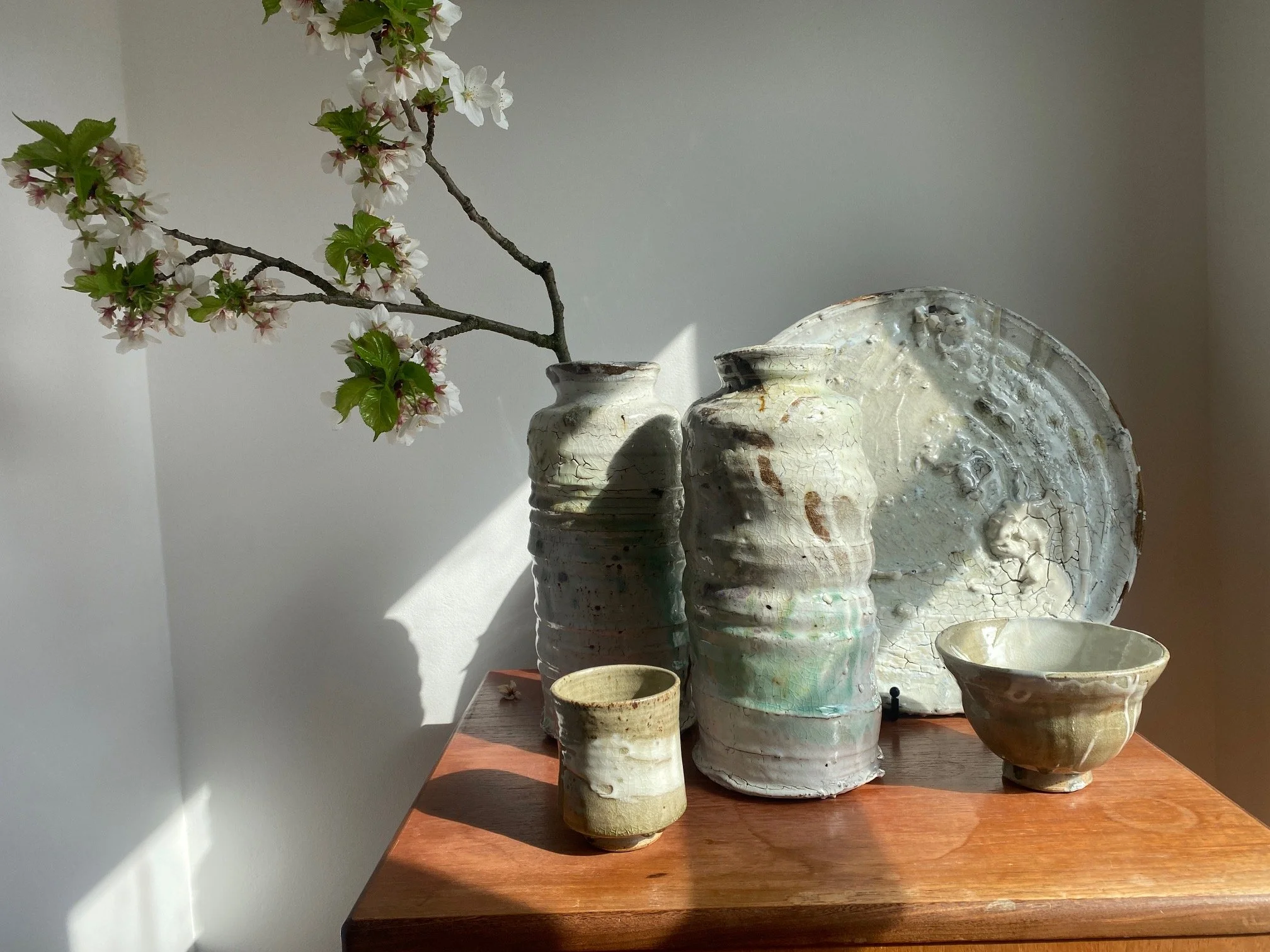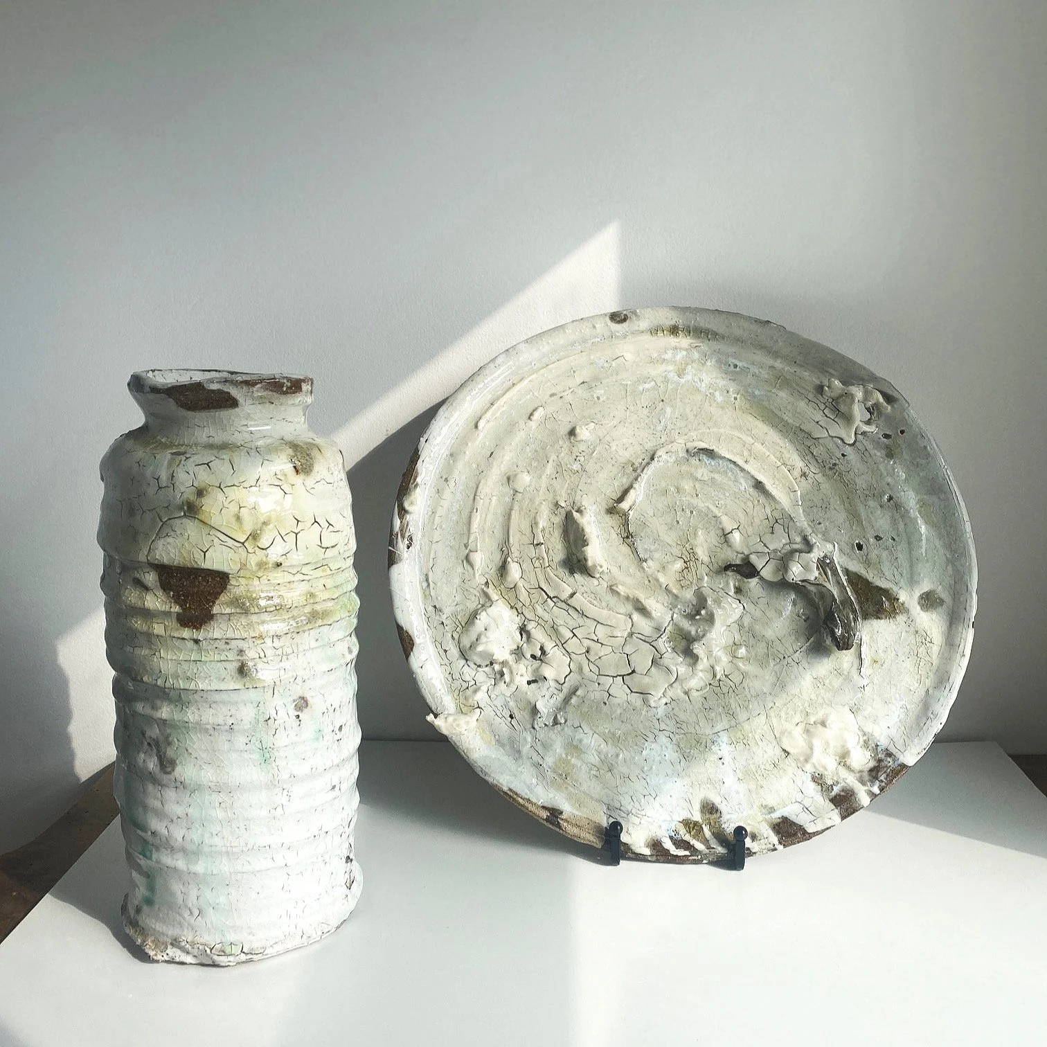 My work largely comprises of functional wheel thrown pots. I always start with the wheel – throwing a form and then stretching and altering it as the wheel is moving. This is a balancing act between control and letting go.